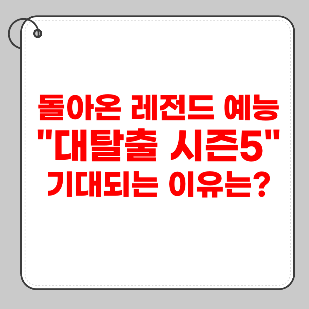 대탈출 시즌5, 다시 한번 레전드가 될 준비가 되어 있습니다.