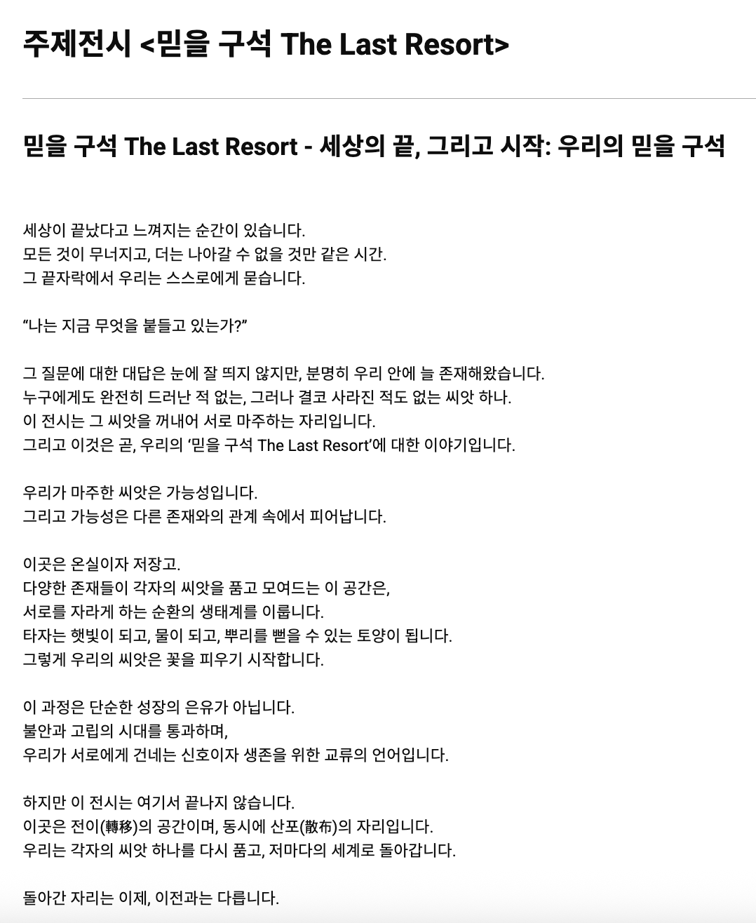 2025 주제: 믿을 구석 (The Last Resort)
