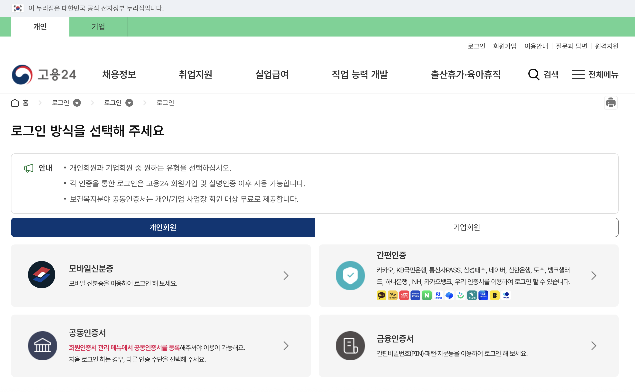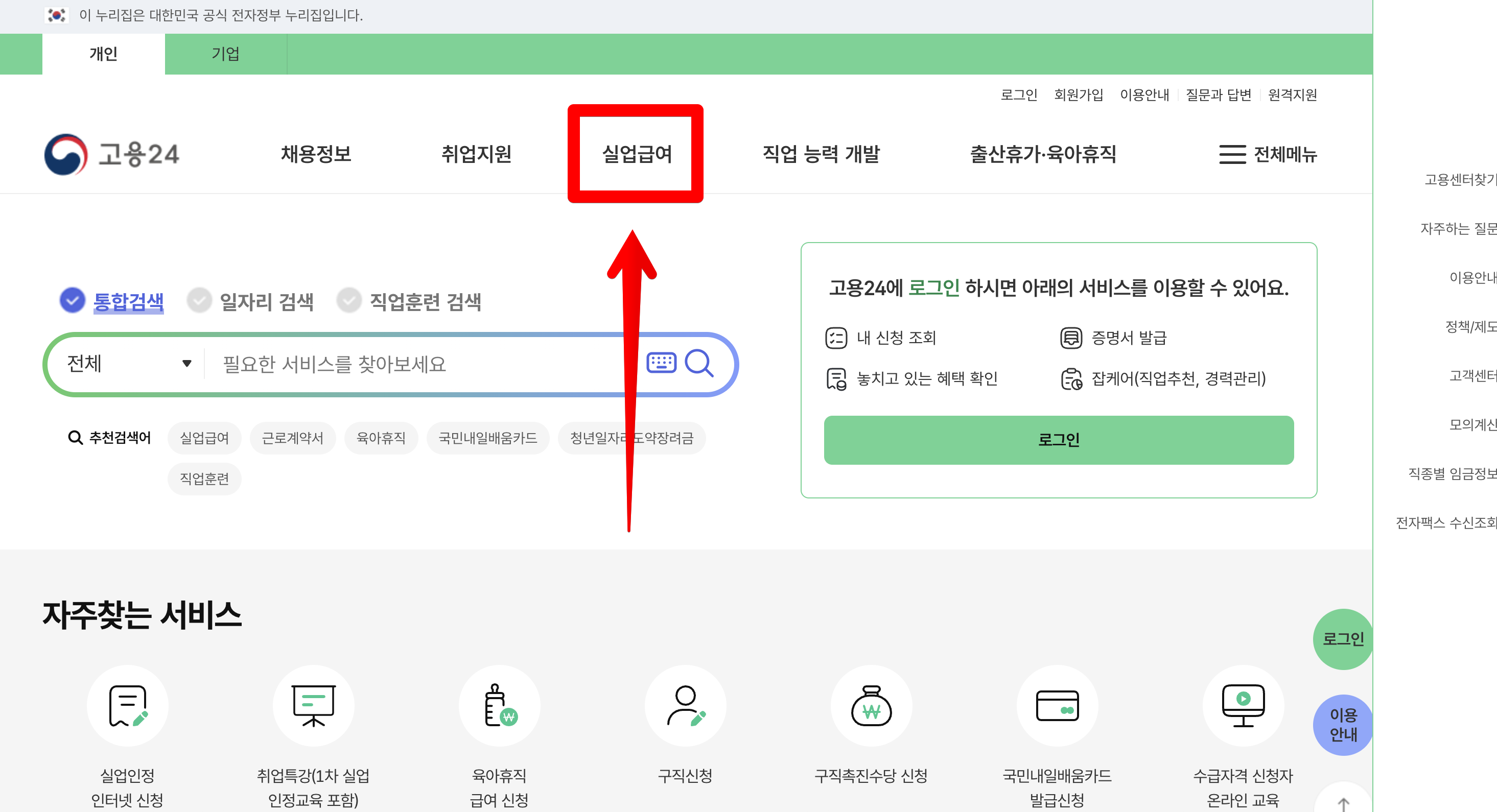 ①고용보험 홈페이지 접속