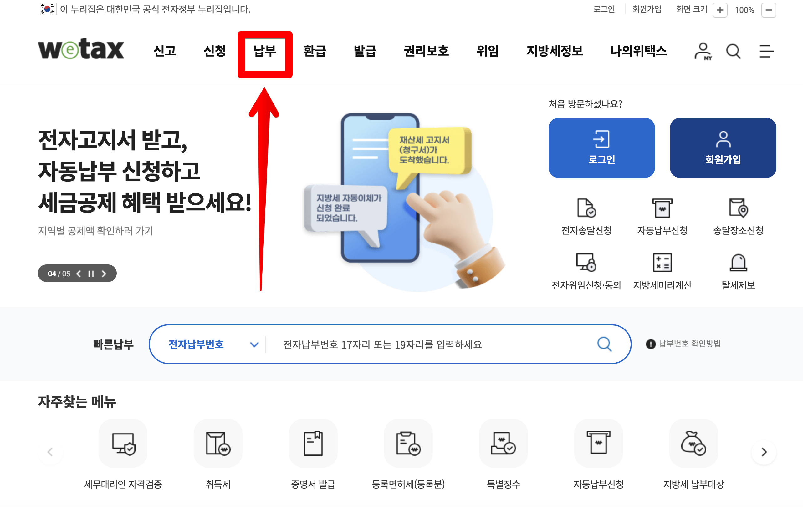- ‘지방세 조회/납부’ 메뉴에서 확인