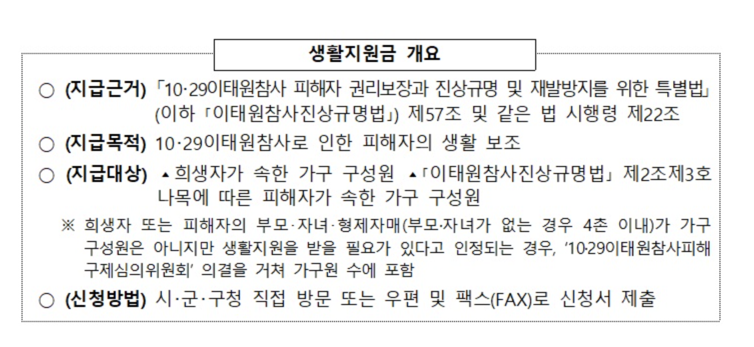 이태원참사 생활지원금이란?