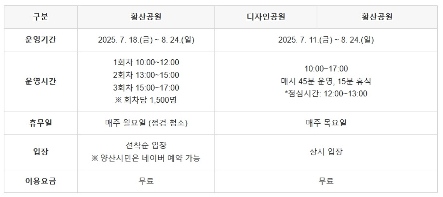 2025 황산공원 물놀이장 운영 총정리