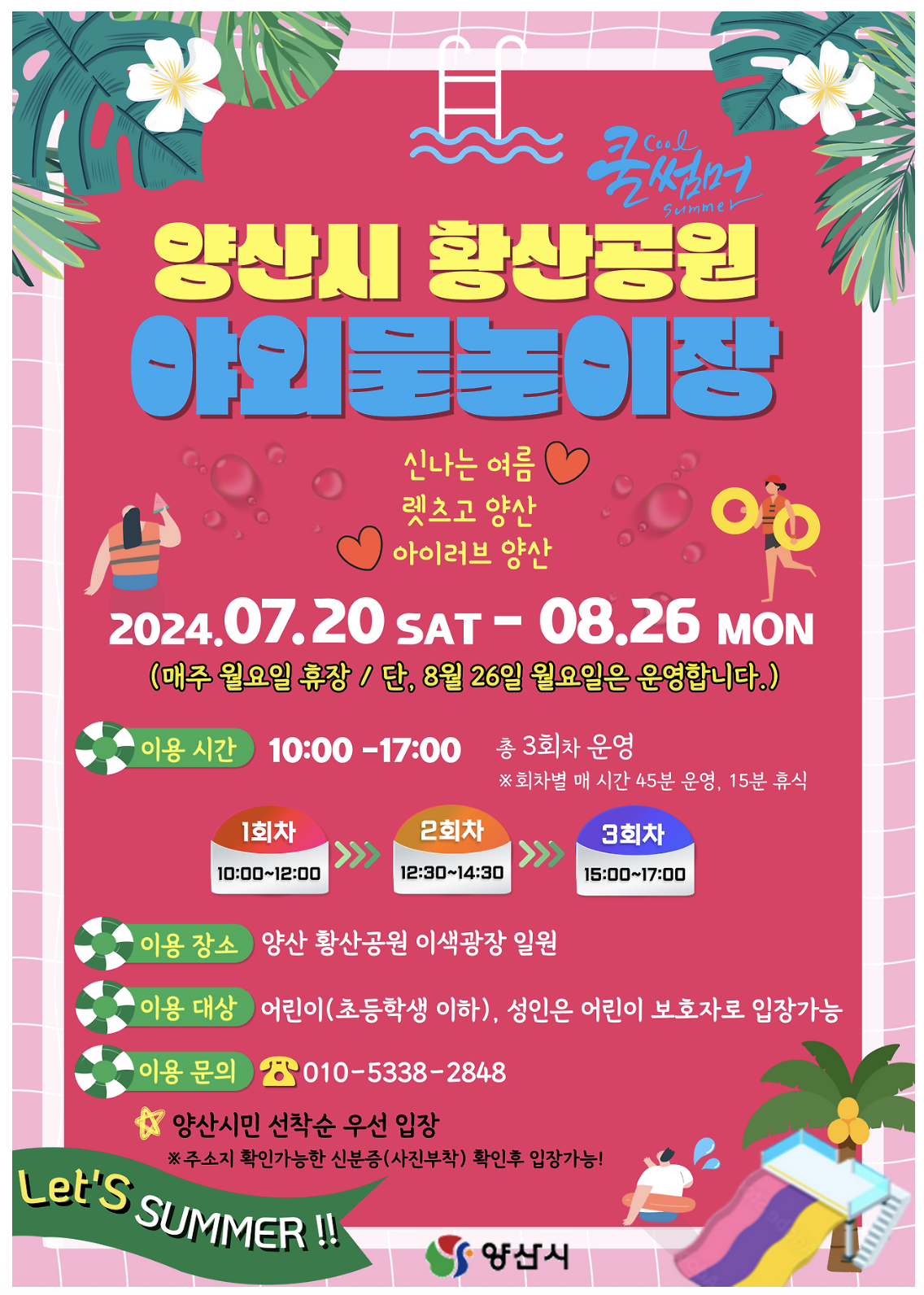 황산공원 물놀이장은 양산시민 우선 입장제로 운영됩니다.