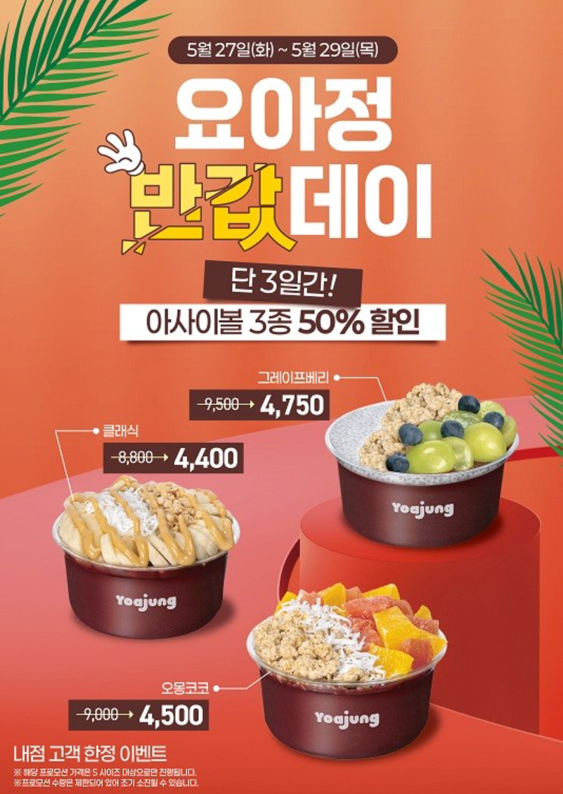 요아정 5월 반값데이, 단 3일간 진행